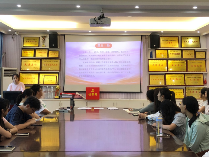 会议第三项,由葛明悦同志领学新党章第五章《党的基层组织》。她对新党章第三十条至三十四条进行了仔细解读,最后表示我们每一位党员都应该深刻理解和认真履行党支部的职责,为推动党的事业发展贡献自己的力量。