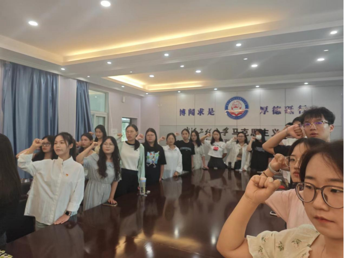 会议第二项,由陈丽同志领誓,支部全体党员重温入党誓词,重忆入党初心。