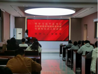 刘子凤同志对习近平总书记在庆祝中华人民共和国成立 75 周年招待会上的讲话进行了领学,她指出习近平总书记深刻总结了 75 年来党团结带领全国各族人民取得的伟大成就,阐述了新时代新征程推进中国式现代化的 “四个必须坚持”。常晓莹同志对习近平总书记在国家勋章和国家荣誉称号颁授仪式上的讲话精神进行了领学,强调在当前以中国式现代化全面推进强国建设、民族复兴伟业的关键时期,作为新时代的奋斗者和建设者,要以勋章获得者为榜样,汲取榜样力量。