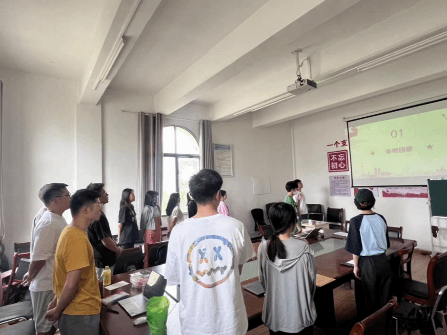 支部活动按照规定动作依次进行。齐声奏唱国歌后,支部组织委员张文志同志带领全体党员一起重温入党誓词。随后,支部副书记徐俊伟同志带领全体党员领学党章第21条至第24条。同时,专题学习了《中华人民共和国保守国家秘密法》。纪检委员刘智梁同志通报了党费收缴情况。本次微党课郑捷同志领学了新修订的《中国共产党纪律处分条例》、习近平总书记五四重要寄语精神、习近平总书记重要文章《组织动员亿万职工积极投身强国建设、民族复兴的伟大事业》、习近平总书记在重庆考察时的重要讲话精神、习近平总书记重要文章《加强文化遗产保护传承弘扬中华优秀传统文化》。