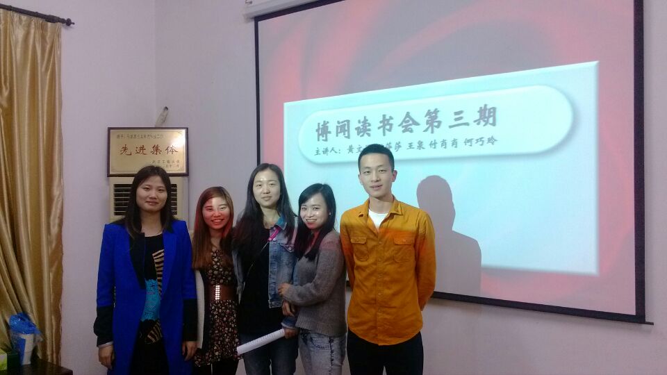2014年4月23日,伟的国际1946bv“博闻”读书会在学院会议室顺利进行。本期读书会由我院学生会主席刘存地、学术部部长付肖肖主持,组织学院研究生积极参与。本次读书会的主讲人分别是谢莎莎、王泉、黄文娟、何巧玲、付肖肖,五位同学以“选择绿色生活,告别十面‘霾’伏”为主题,分别作了精彩生动的报告。