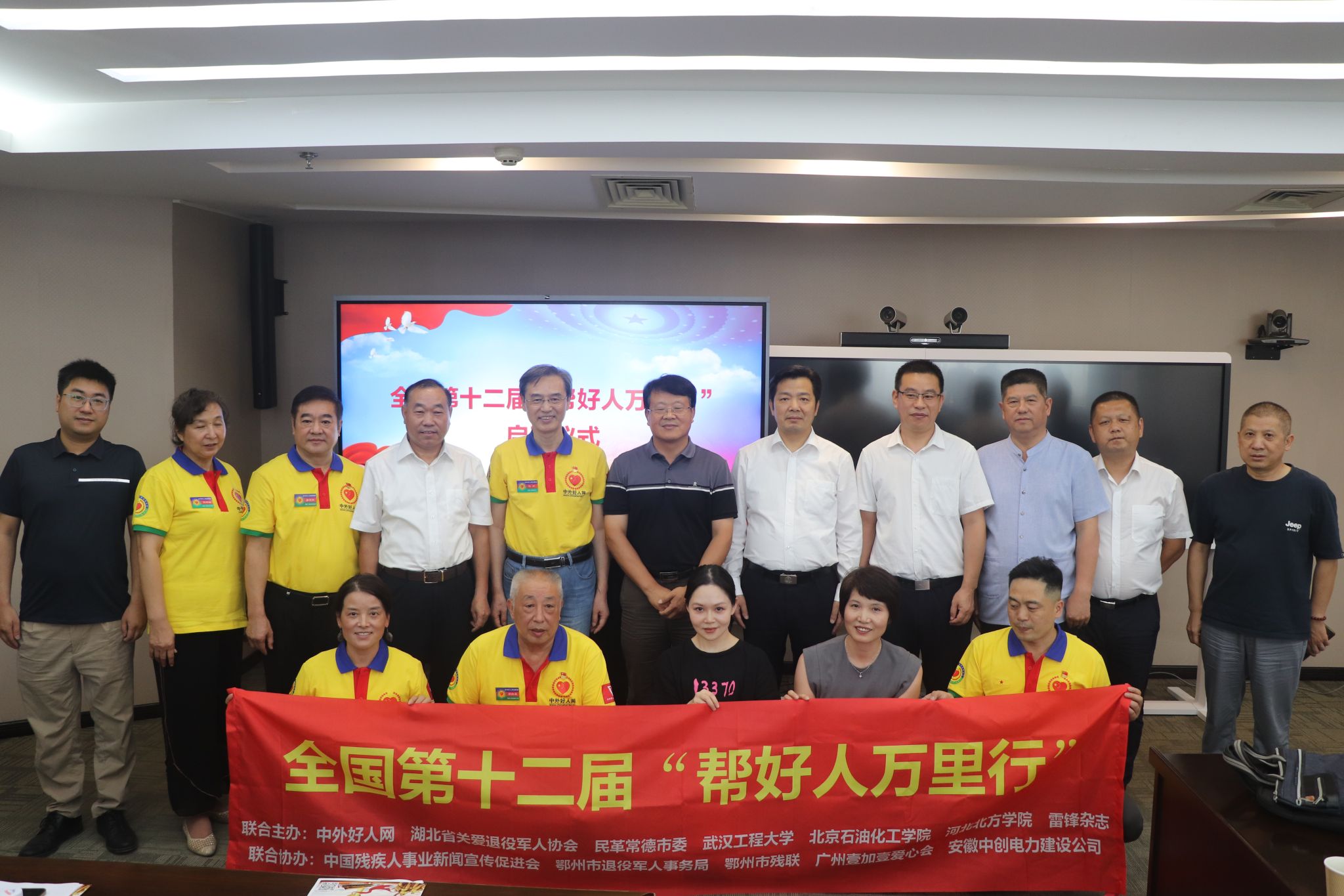 本网讯(通讯员 蔡明广)8月22日下午,由中外好人网发起主办,我校和湖北省关爱退役军人协会联合主办,鄂州市退役军人事务局、鄂州市残联等单位联合协办的全国第十二届“帮好人万里行”启动仪式在省退役军人服务中心一号会议室举行。