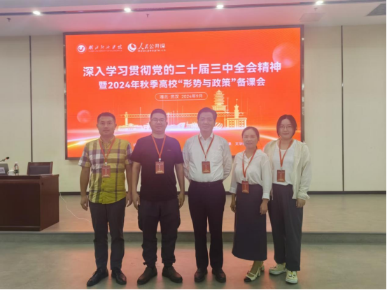 (通讯员 陈永贵)9月7日,由人民网、湖北经济学院、文华在线联合举办的深入学习贯彻党的二十届三中全会精神暨2024年秋季高校“形势与政策”备课会在湖北经济学院笃行楼一号报告厅举行,我院院长曹胜亮教授,以及“形势与政策”课程专任教师操菊华、陈永贵、邱峰、庄芩参加了备课会。