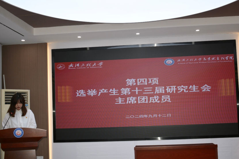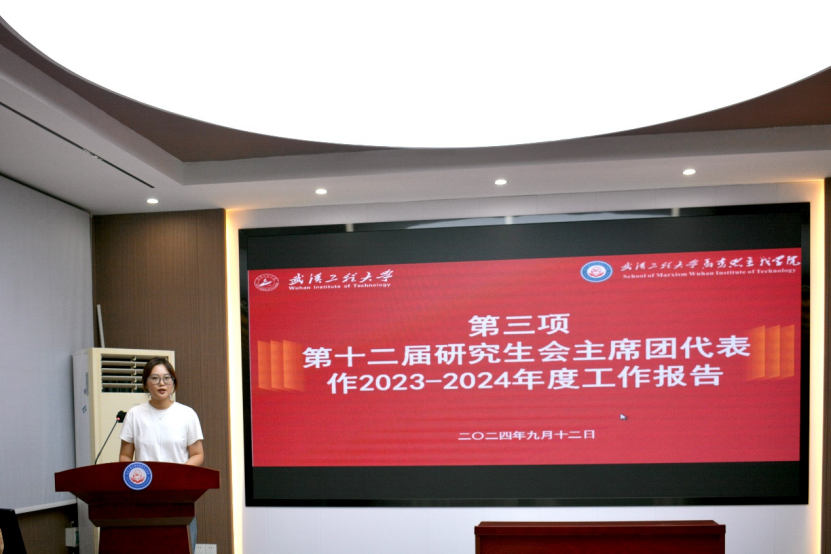会议第三项,第十二届研究生会主席团代表张雅婷作第十二届研究生会工作报告。