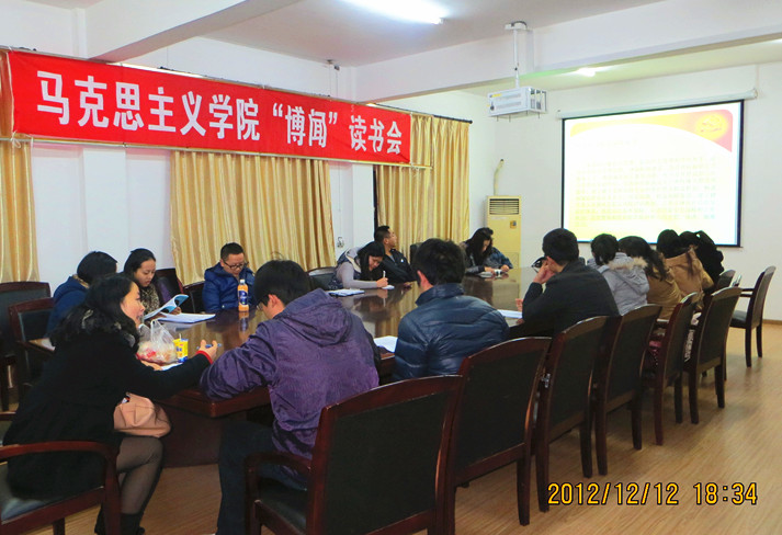 2012年12月12日晚,第八期“博闻”读书会在流芳校区伟的国际1946bv会议室顺利举行。本期读书会由院研究生会主席李嘉仪、学术部部长孙梓毓主持,并组织学院研究生积极参与。此次读书会的主讲人分别是来自我院的刘辰、王欢、刘恕淼、李霞四位同学。四位同学以“中国共产党第十八次全国代表大会”为主题进行了精彩生动的报告,赢得了在座同学的认可和掌声。