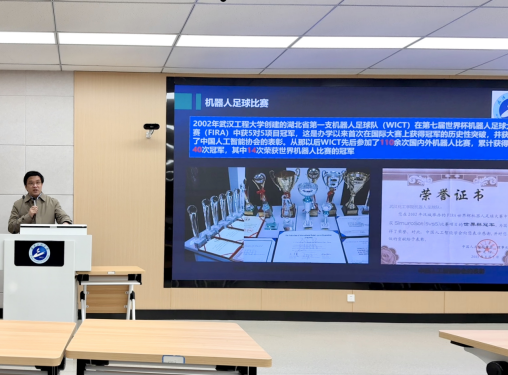 随后,卢教授以机器人比赛为切口,详细介绍了我校计算机科学与工程学院、人工智能学院的各团队在人工智能方面的突出成就。卢教授强调,我校在人工智能上的研究时间早、发展速度快、研究成果突出,为中国人工智能的发展注入了无限的生机与活力。
