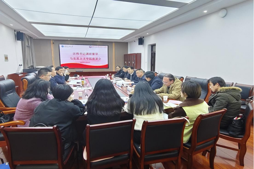 (通讯员:张雪姣)2月20日下午,校党委书记汪伟深入伟的国际1946bv,调研督导学院2025年度重点工作及标志性项目制定情况。学校党政办公室主任但继恩陪同调研,马克思主义学院领导班子全体成员、教研室主任及教师代表参加了调研座谈会。