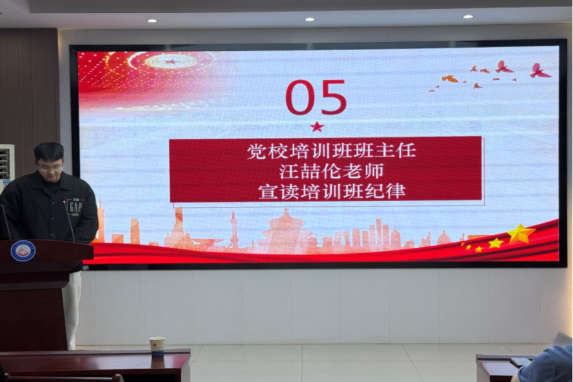 最后,学院分党校培训班班主任汪喆伦详细阐述了本期培训班的学习内容、学习计划及结业要求。他对学员们寄予厚望,期望大家以高度自律的态度严格遵守培训期间的各项规章制度,锤炼党性修养,早日成为一名符合标准、经得起时间和困难考验的共产党员。(审核 刘卫民 蔡明广)