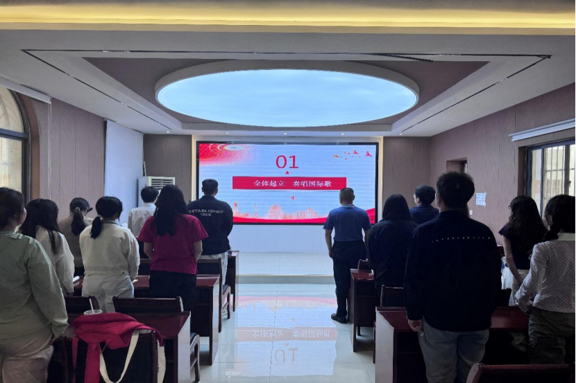 典礼第一项,全体起立,奏唱国际歌,激昂的旋律中,开班典礼正式拉开帷幕。