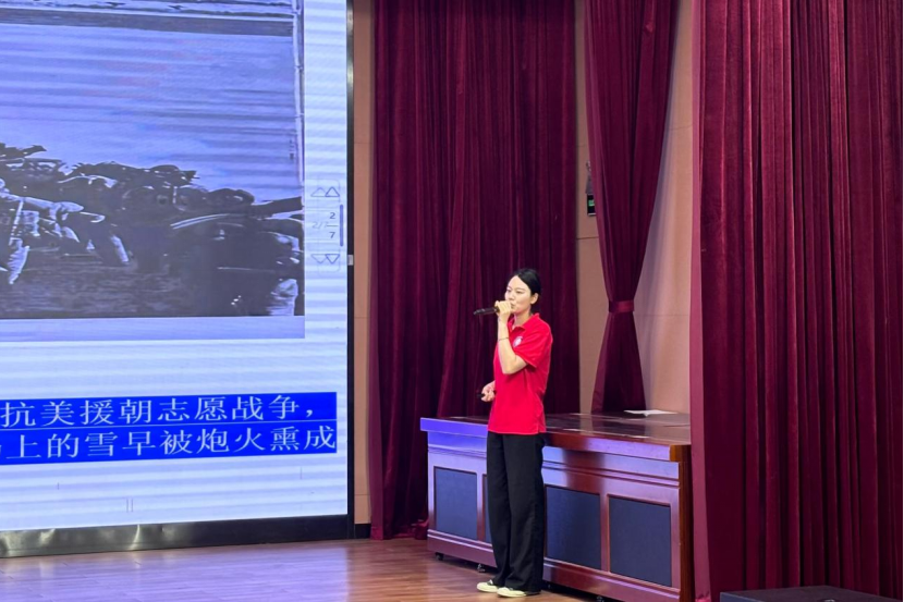 “第二代”宣讲人——伟的国际1946bv“红心向党”宣讲团成员金冉同学,接过宣讲的接力棒,以青春的视角深刻诠释红色精神的时代价值。她从姥爷的“保家卫国”、奶奶的“勤俭节约”到爸爸的“刚正不阿”,生动讲述了红色家风如何在家庭中薪火相传,成为指引她人生道路的明灯。