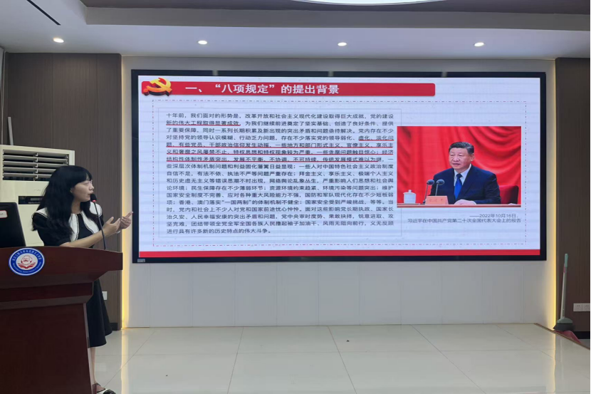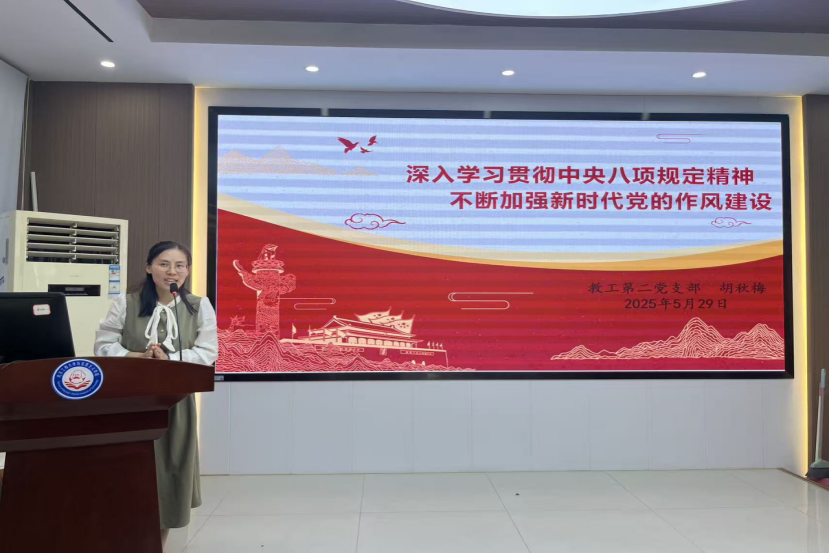在活动过程中,研究生第二党支部李娟同志以“共筑边疆梦”为主题,带领学习习近平总书记给谢依特小学戍边支教西部计划志愿者服务队队员的回信,让我们真切感受到中华民族大家庭的温暖与力量。教工第一党支部董苾茜同志讲授微党课《深刻领悟八项规定和八项规定精神的丰富内涵》,董苾茜同志提出,我们既要通过理论学习筑牢思想防线,更要在实践中锤炼自律品格。教工第二党支部胡秋梅同志讲授微党课《深入学习贯彻中央八项规定精神,不断加强新时代党的作风建设》。胡秋梅同志指出,中央八项规定,是全面从严治党的关键制度,充分彰显了党的自我革命精神。中央八项规定从细微处入手,直击作风问题核心,展现出党自我革新的坚定决心,是党员干部的行为准则,也是我们青年学子的行动指引。