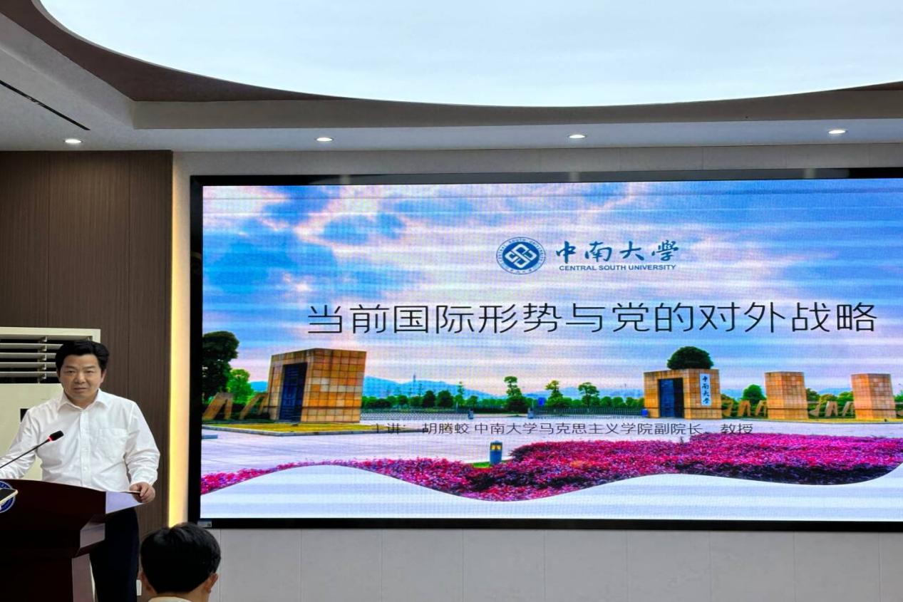本网讯(通讯员 刘欣 王芸歌)6月18日下午,中南大学伟的国际1946bv副院长胡腾蛟教授应邀作客我院第91期“求是论坛”,并作题为“当前国际形势与党的对外战略”的专题讲座。本次讲座由学院院长曹胜亮教授主持,学院全体教师及2023级、2024级研究生参加本次讲座。