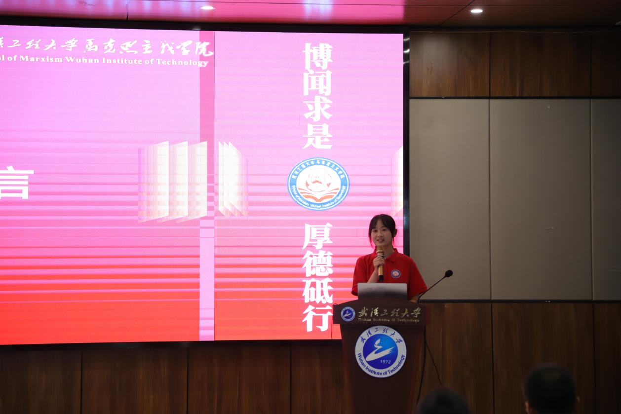 新生代表方心怡深情地讲述了迎新期间的感动,对学院领导以及师生给予的温暖关怀表达了诚挚的感谢。她代表新生作出承诺:要坚定信念,筑牢思想根基;要潜心治学,练就过硬本领;要知行合一,勇担时代使命。她还表示:“作为新时代马院学子,我们不仅是知识的继承者,更是思想的传播者、真理的践行者。”