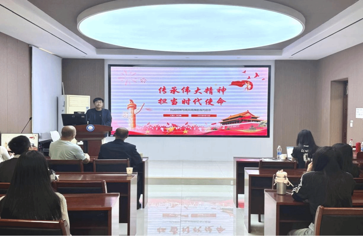 默哀结束后,学院组织全体研究生同步收看由教育部、中央网信办、人民日报社、国家文物局主办、人民网协办的“全国大中小学生同上一堂思政大课”大学篇“大国担当”直播。直播中,专家学者围绕纪念中国人民抗日战争暨世界反法西斯战争胜利 80 周年展开论述,从历史纵深出发,结合新时代中国在国际舞台上的责任与担当,生动阐释了伟大抗战精神的时代内涵,让在场研究生深刻理解了“大国担当”的重量,进一步激发了大家的民族自豪感与使命感。