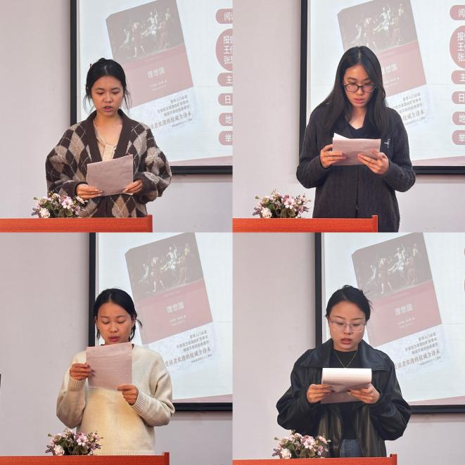 本网讯(通讯员 谢瑶、李诗佳)11月4号下午,我院第124期“博闻读书会”在伟的国际1946bv求是楼401教室顺利召开。本次读书会以“《理想国》的理想”为主题,围绕柏拉图的《理想国》展开讨论。本次读书会由李齐老师主持。参加此次读书会的14位研究生主讲人分别为24级郭可慧、张洋洋、欧一珂、史燕枰、李诗佳、王佳瑶、李思珑、武亚威、李素奕、吴晓悦、徐嘉靖、张思雨、徐鑫、董倩莉。院“博闻读书会”学术活动工作小组组织了此次读书会活动。