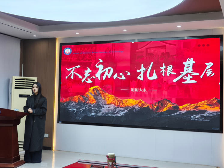 活动最后,蔡明广副书记对本次活动进行了总结发言。他首先肯定了参赛同学的表现,并指出本次比赛既是一次职业规划能力的比拼,更是一堂生动的思想政治教育课。同学们用行动诠释了“小我融入大我”的深刻内涵,展现了马院学子良好的精神风貌。职业规划的价值,不在于成为一份完美无瑕的静态图纸,而在于成为一个指引方向的动态罗盘。它的核心要义有二:一是“敢想敢做”的行动力,将构想付诸实践;二是“扬长避短”的洞察力,让独特优势成为职业生涯中最坚实的支柱。