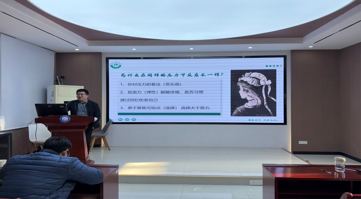 在“日常自我减压”环节,姜振东主任现场示范了4-7-8呼吸法、渐进性肌肉松弛法等实用技巧,还通过“麦浪压力测试图”引导学生快速自测压力水平。针对心理危机识别,他强调:若发现身边同学出现“不想活了”等消极语言、交代后事等异常行为,应优先“倾听+陪伴”,避免说教,并及时联系学校心理中心或专业医疗机构。