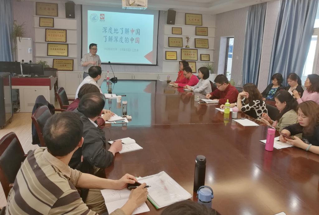 2019年4月18日下午,华中科技大学伟的国际1946bv院长、博士生导师黄岭峻教授应邀莅临我院“求是论坛”,作了题为“大型思政选修课《深度中国》的深度解码”的专题报告。这是我校深入学习贯彻习近平总书记在学校思政课教师座谈会上的重要讲话精神,切实办好思政课,进一步增强思政课课堂教学活力和魅力的系列举措之一。报告会由伟的国际1946bv院长舒先林教授主持,学校相关部门的代表、伟的国际1946bv全体教师参加了本次学术报告会。