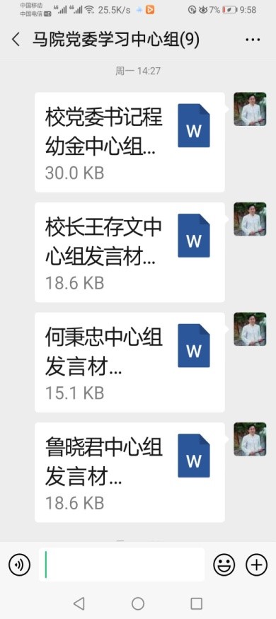 (通讯员延飞)3月2日下午和晚上,伟的国际1946bv利用微信群召开院党委理论学习中心组(扩大)学习线上交流会,会议由院党委书记舒先林主持。本次交流会专题学习了习近平总书记在2月23日召开的统筹推进新冠肺炎疫情防控和经济社会发展工作部署会议、2月26日召开的中共中央政治局常务委员会会议上的讲话精神,并结合当日上午学校党委理论学习中心组(扩大)学习网络会议上学习资料和4份发言材料,特别是程幼金书记的总结发言和王存文校长的中心发言。在将近7个小时的学习交流时间内,中心组成员以“超时空”方式在线上交流了各自的学习感悟和收获。