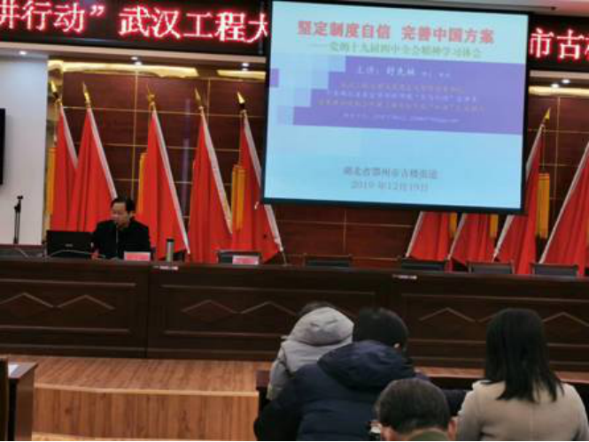 马院在做好自身教学科研、学生培养工作的同时,高度重视社会服务。马院多名教师为湖北省委讲师团“理论热点面对面”专家组成员,为湖北省基层理论宣讲工作作出了积极的贡献。尤其是2019年11月十九届四中全会召开后,伟的国际1946bv迅速成立了十九届四中全会精神宣讲团。宣讲团团长由学院党委书记舒先林教授担任,院长曹胜亮教授以及副院长常城、金诗灿,原理教研室主任李齐博士、思修教研室主任王威博士、纲要教研室主任兰洁博士等都是宣讲团成员。宣讲团成员多次赴、宜昌、鄂州、天门等地进行宣讲,受到群众的热烈欢迎。省委讲师团对马院专家组给予了高度评价。
