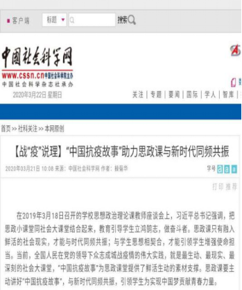 我院积极响应中央号召,贯彻落实学校部署,坚持停课不停学、停课不停教,将线上教学和线下自主学习相结合,积极探索网络教学新模式、新方法。多名教师坚持疫情防控和教学工作相结合,将亲身经历、疫情现场转化为思政课堂鲜活的案例,教育引导学生弘扬爱国主义精神,增强四个自信,取得了良好效果。