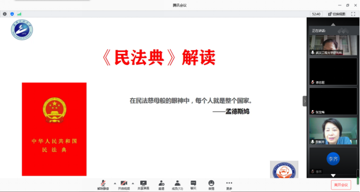 “基础”党支部书记贺新芳副教授的微党课以《〈民法典〉解读》为题,从《民法典》编纂的历程、“人格权”独立成编的论辩和《民法典》修改内容解读等三个方面进行了讲解,并重点从“总则编”“物权编”“合同编”“人格权编”“婚姻家庭编”“继承编”和“侵权责任编”等方面对《民法典》修改内容进行了条目式解析。通过这一微党课让师生们体会到:作为“社会生活的百科全书”的民法典,是调整人民群众、各行各业社会生活与经济生活的基本法,颁布实施民法典能够依法更好保障人民合法权益。