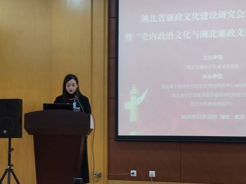 (通讯员 娄圆梦)2020年12月12日,伟的国际1946bv青年教师兰洁博士作为教师代表参加了在湖北省社科院举办的“湖北省廉政文化建设研究会2020年年会暨‘党内政治文化与湖北廉政文化’理论研讨会”。会议以“党内政治文化与湖北廉政文化”为主题,70余名专家学者就新时代党内政治文化建设的理论与实践 、湖北廉政文化资源、传统廉政文化的现代价值等十个议题开展了深入交流与探讨,兰洁博士在会议中作了相关发言。