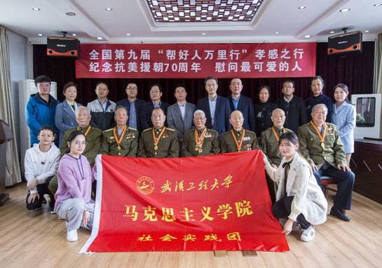 在过去的2020年间,10月24日至25日,马院党委书记舒先林教授、团委书记蔡明广带领硕士研究生,组成社会实践师生团赴孝感参加了全国第九届“帮好人万里行”大型公益活动。正值重阳佳节和抗美援朝出国作战胜利70周年纪念日这个特殊的日子里,“帮好人万里行”湖北孝感之行代表团看望并慰问了祖国最可爱的人——9名曾参加抗美援朝战争的退役老兵:王清珍,李国增、夏登明、闫正腾、朱奇才、李天运、王玉生、钟生全、龚晓初。