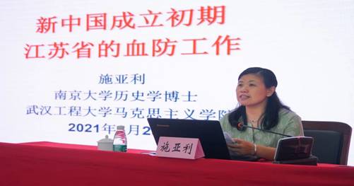 施亚利博士将党史和血防史结合起来,从四个方面,介绍了新中国成立初期江苏省的血防工作。