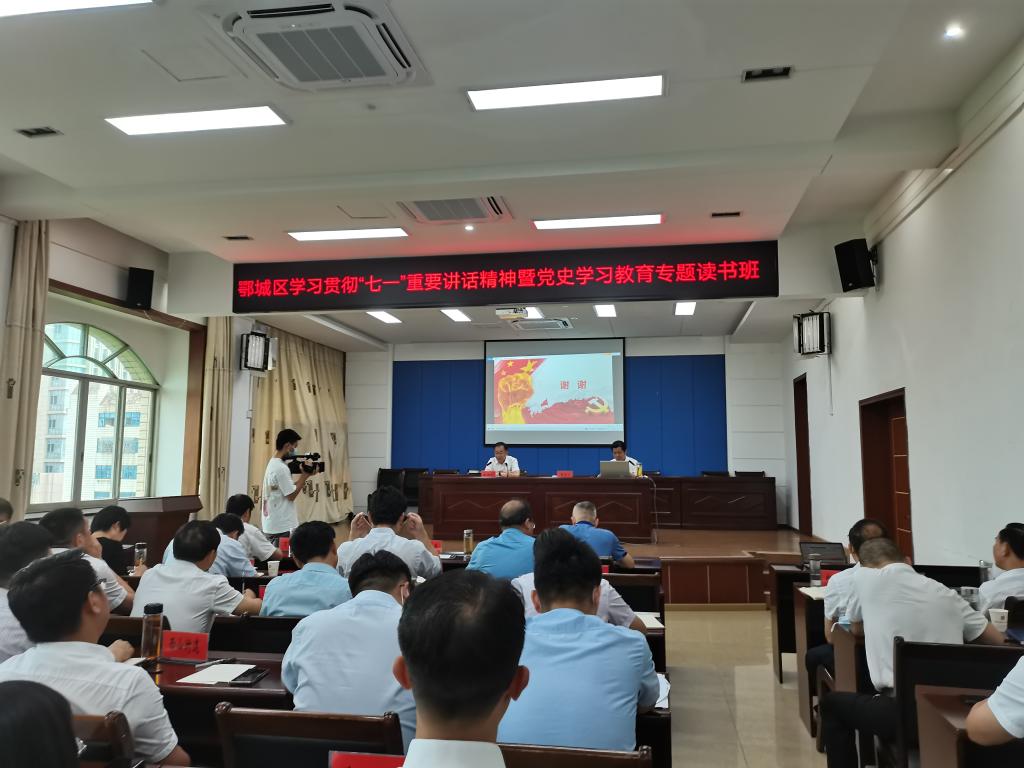 (通讯员钟佩)为深入学习贯彻习近平总书记在庆祝中国共产党成立100周年大会上的重要讲话精神,推动党史学习教育走深走实,2021年7月13日上午,我校理论热点面对面示范点建设专家组组长伟的国际1946bv院长曹胜亮教授应邀出席鄂城区委理论学习中心组(扩大)学习贯彻“七一”重要讲话精神暨党史学习教育专题读书班开班式,并作党史专题辅导报告。本次读书班开班式在区委六楼会议室举行,参加学习有区“四大家”领导,法检“两长”,区人武部政委,各镇(街、开发区)党政主职和区直各部门主要负责同志。鄂州市鄂城区区委书记、区长董国平主持并讲话。