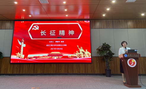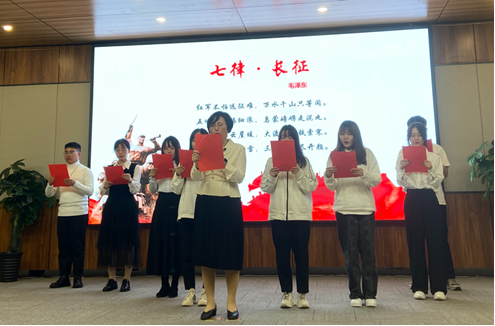 中央红军从江西瑞金出发,历经血战湘江、四渡赤水、巧渡金沙江等战役,总里程约为二万五千余里,最终在甘肃会宁会师。在对上述长征历史进行回顾后,周智年教授和学生代表通过颂读毛泽东同志的《七律·长征》再一次共同感悟了伟大的长征精神。