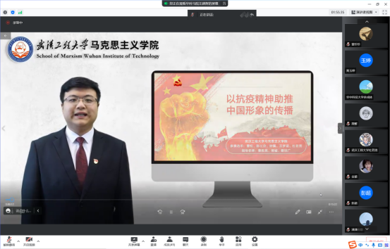由曹胜亮教授、常城副教授和蔡明广老师指导的曹松、陈沚欣、王梦涵、杜若男、钟佩五名同学组成的代表队以《以伟大抗疫精神助推中国精神的传播》为题,选取新冠肺炎疫情中出现的污名化现象,与国家形象相联系,展开对中国形象的塑造与传播相关内容的教学,案例新颖,切入点巧妙,呈现了一堂生动精彩的思政课。