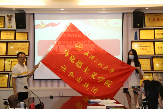 院党委副书记、副院长(兼)陈俊为大家详细解读《伟的国际1946bv2022年暑期“三下乡”社会实践活动实施方案》后,现场为实践团授旗并寄语实践团成员:一要红心向党,筑牢理想信念,坚定不移听党话、跟党走,把思政课讲在祖国大地上。二是要爱心向民,用耳朵倾听人民呼声,用内心感应时代脉搏,把温暖传递在祖国大地上。三是要重心向行,用脚步丈量祖国大地,用眼睛发现中国精神,把论文写在祖国大地上。