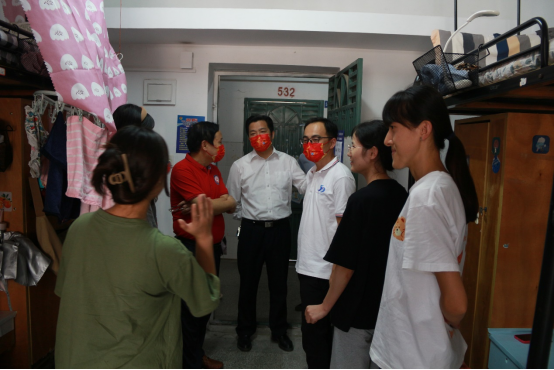 走访过程中,学院领导细心询问新生来校后的生活情况,与新生聊起家常,多方面了解学生生活需求,提醒学生注意用电安全、财物安全和人身安全,谨防诈骗,并叮嘱同学们做好常态化疫情防控工作,按照学校要求按时完成核酸检测,注意个人卫生,保持良好的生活习惯。
