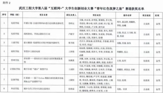 (通讯员:肖雅钰 雷翊君)为培养创新创业人才,持续激发大学生创新创业热情,展示创新创业成果,创新创业学院、教务处、学生处、校团委、研究生院联合主办了伟德源自英国1946第八届“互联网+”大学生创新创业大赛。经学院推荐、校赛组委会组织专家评审,最终评出高教主赛道金奖项目75个、银奖项目115个、铜奖项目127个;“青年红色筑梦之旅”赛道金奖项目10个、银奖项目17个、铜奖项目19个;产业赛道金奖项目7个、银奖项目11个、铜奖项目13个。我院喜获高教主赛道研究生初创组校级金奖1项、“青年红色筑梦之旅”公益赛道校级金奖、校级银奖各1项。