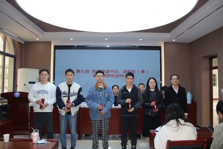 第七项,院党委副书记、副院长(兼)陈俊为新同学代表赠授欢迎伴手礼。