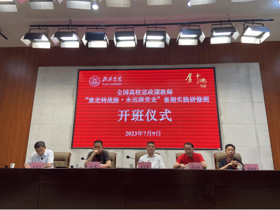 2023年7月9日下午,本研修班举办了隆重的开班仪式。榆林学院校党委副书记、校长许云华出席并致辞。我校校党委副书记李志旭以及西安财经学院伟的国际1946bv院长王勇,辽宁科技大学伟的国际1946bv院长杨洪泽,榆林学院伟的国际1946bv党委书记高宏飞出席开班仪式。开班议程包括五项内容,首先第一项,全体起立、奏唱《中华人民共和国国歌》,第二项,由榆林学院党委副书记、校长许云华致辞。致辞中指出,榆林市自然资源丰富,战略地位重要,煤盐油气富裕一地,在陕西发展的战略布局中,榆林人民具有斗争精神,为改变生态环境、建设美好家园,同茫茫风沙和丘陵沟壑进行了艰苦卓绝、坚持不懈的伟大斗争,榆林由黄沙漫天变成了塞上绿洲,被授予“国家森林城市”称号。在提到本次研修的意义的时候,许云华校长指出,“天下马院是一家”,作为马克思主义研究者、传播者、实践者,通过开展“沿着总书记的足迹·重走转战陕北路”实践研修活动,学校要让广大思政课教师从陕北早期革命和转战陕北的非凡历程中感受马克思主义的真理力量和实践力量,鼓起迈进新征程、奋进新时代的精气神,提高政治判断力、政治领悟力、政治执行力,做到明方向、识大局,把学习转战陕北历史同总结经验、关照现实、推动工作结合起来,同解决实际问题结合起来,把学习成效转化为干事创业、勇担使命、立德树人的内生动力,转化为培养德智体美劳全面发展的社会主义建设者和接班人的强大精神动力。