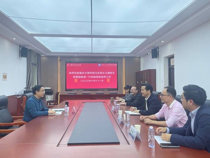 (通讯员 蔡明广 邹建婷)10月31日下午,重庆文理学院伟的国际1946bv副院长李景国教授莅临我院指导工作,就马院建设和发展进行深入调研和交流。本次调研交流会在我院求是楼211会议室举行。学院领导班子、学工办和教学办参加了此次会议。会议由曹胜亮院长主持。